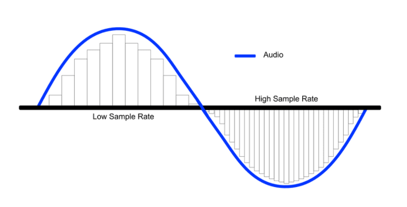 sampling 시 특정 간격을 의미한다. sample rate가 높을수록 음질이 좋은데, 특히 높은 주파수를 가진 소리(고음)의 해상도가 좋아진다.