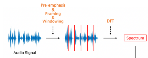 [source] https://ratsgo.github.io/speechbook/docs/fe/mfcc 푸리에 변환을 실시한 결과물을 그래프로 나타낸 것을 spectrum이라고 한다. 즉, 파동의 시간 도메인을 주파수 도메인으로 변환한 것이다.
