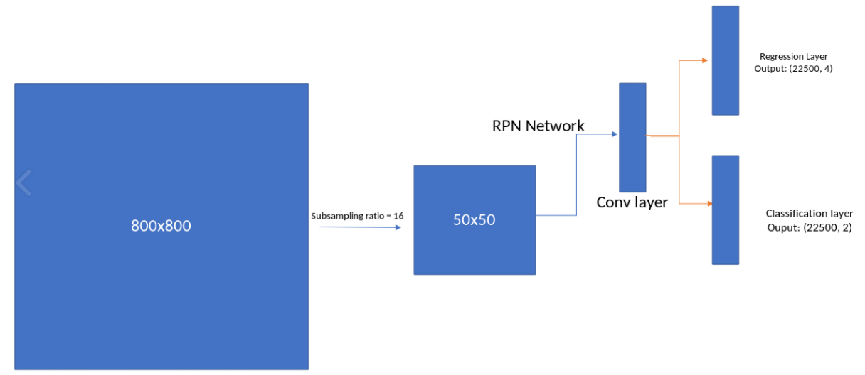 따라서 [그림 10]의 Regression Layer의 output은 (22500, 4), Classification Layer의 output은 (22500, 2)가 된다.