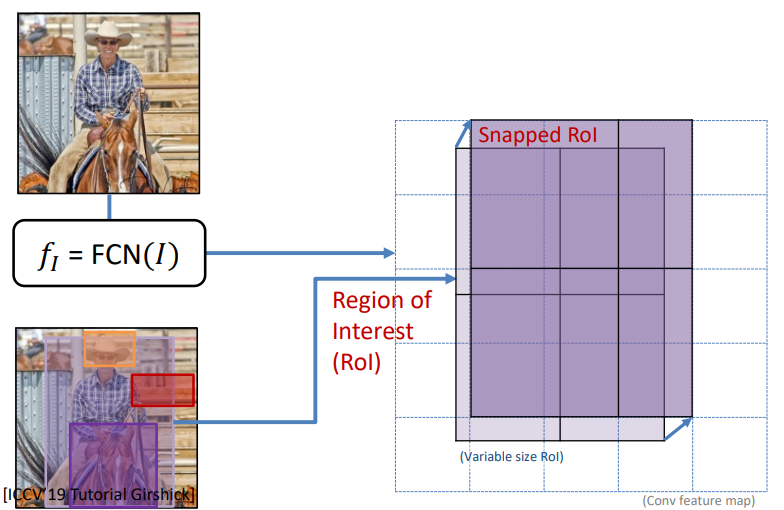 - Selective Search로 찾은 RoI를 2번의 feature map 크기에 맞춰 feature map에 Projection 시킨다.
