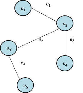 - $E = {e_{1} : (v_{1}, v_{2}), e_{2} : (v_{2}, v_{3}), e_{3} : (v_{2}, v_{4}), e_{4} : (v_{3}, v_{5})} $