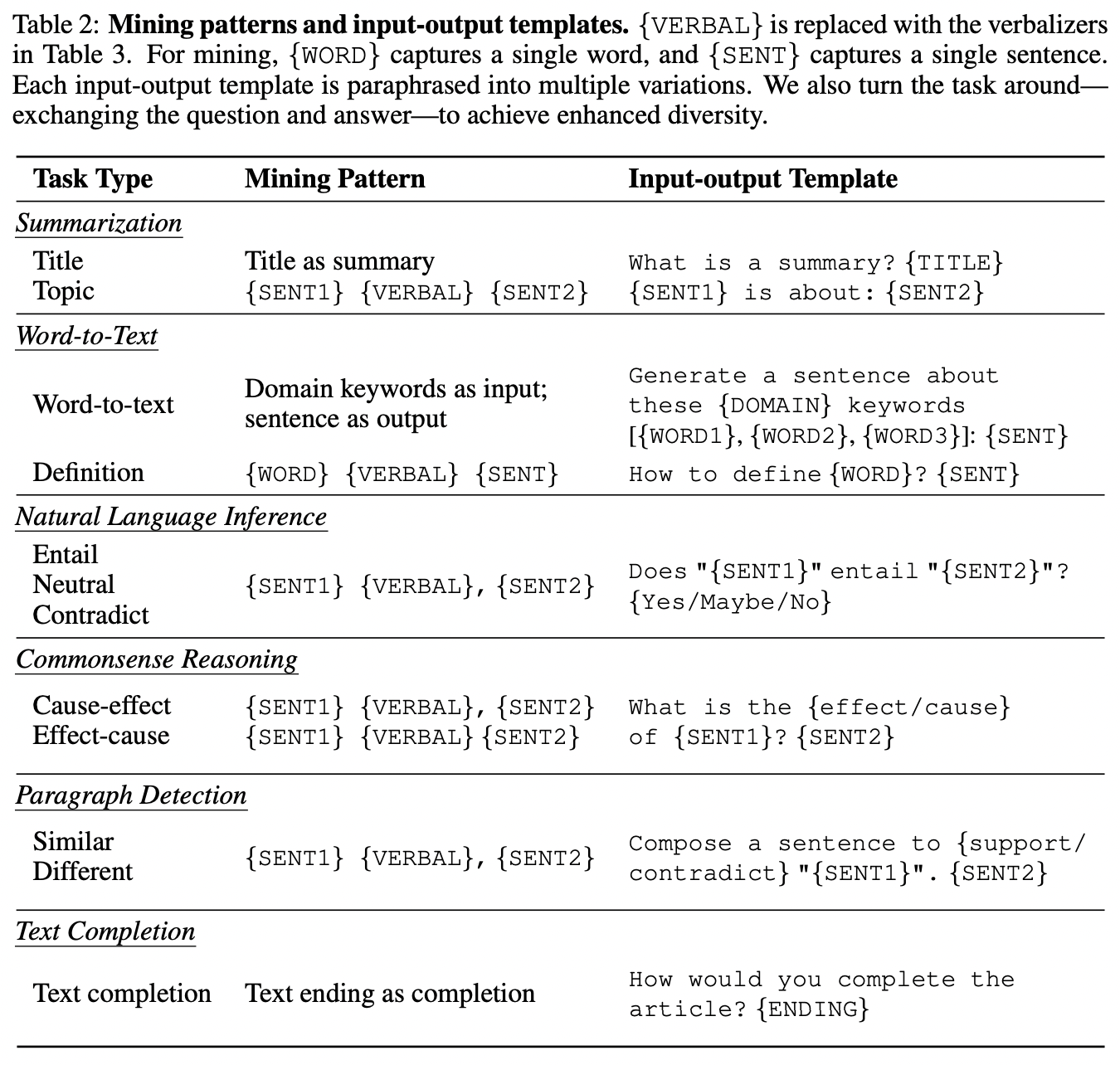 (코드 확인 결과 article을 요약하는 것이 아닌 제목을 요약으로 본문을 랜덤하게 나누어 sent1, sent2로 사용)Word-to-Text word-to-text는 모델이 특정 단어를 포함하는 문장을 생성하도록 유도함으로써 domain-specific 어휘에 대한 이해도를 향상시킨다. 본 연구진은 domain-specific 단어를 식별하기 위해 SentencePiece 도구(Kudo & Richardson, 2018)를 사용하여 target domain corpora에서 어휘를 구축한다. 그 다음 domain 어휘에는 존재하지만 일반 어휘에는 없는 단어를 domain 별로 간주하여 이 domain 어휘를 일반 언어 모델의 어휘와 비교한다. 또한 10자 미만의 token을 필터링하여 domain-specific keyword 세트를 생성한다. raw text의 각 문장에 대해 domain-specific keywords의 수를 센다. Word-to-Text 작업을 수행하기 위해 domain-specific keywords가 3개 이상인 문장을 선택한다. 본 연구진은 sentence안의 domain-specific keywords를 입력으로 받아 모델이 Generate a sentence that includes these {DOMAIN} keywords 문장을 생성하도록 요청한다. 또한 이 문장을 input으로 받음으로써 What keywords abot {DOMAIN} can be extracted from this sentence? 이를 모델에게 입력하여 target domain에 대한 키워드를 찾도록 요청함으로써 작업을 전환한다. 여기서 우리 연구진은 {DOMAIN} 을 biomedicine, finance or law와 같은 domain 이름으로 대체하여 target domain을 지칭한다. 표 2의 mining pattern과 input-output template를 사용하여 개념을 정의하는 언어 모델을 목표로한다. Natural Language Inference ... Commonsense Reasoning ... Paraphrase Detection ... Text Complete ... 이와 같이 중략된 부분은 논문을 참고 바란다. Main Results  위와 같이 domain-specific datasets의 Domain Knwledge를 잘 이해하며, Prompting Ability를 해치지 않는 결과를 보여준다. 'Machine & Deep Learning' 카테고리의 다른 글