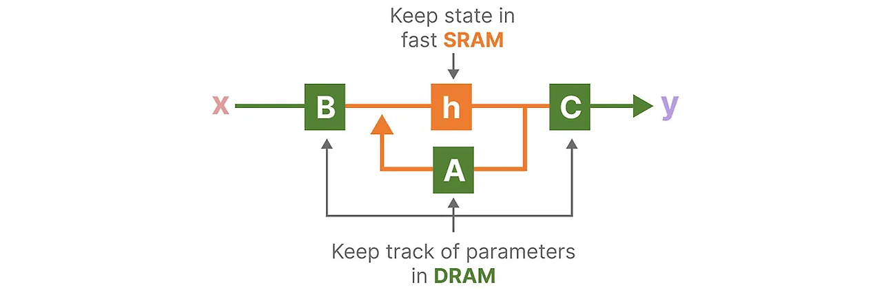 Mamba는 Flash Attention과 같이 DRAM에서 SRAM으로, 또 그 반대로 이동하는 횟수를 제한하고자 했다. 이 것은 커널 융합을 통해 모델이 중간 결과를 쓰는 것을 방지하며, 계산을 완료할 때까지 지속적으로 계산을 수행한다.
