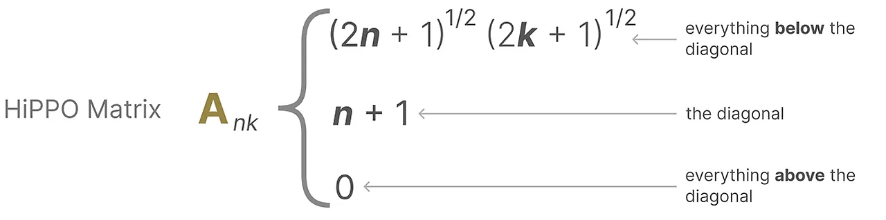 Hungry Hungry Hippo 또는 HiPPO(High-order Polynomial Projection Operators)를 사용한다. HiPPO는 지금까지 본 모든 입력 신호를 계수의 벡터로 압축하려고 시도한다.